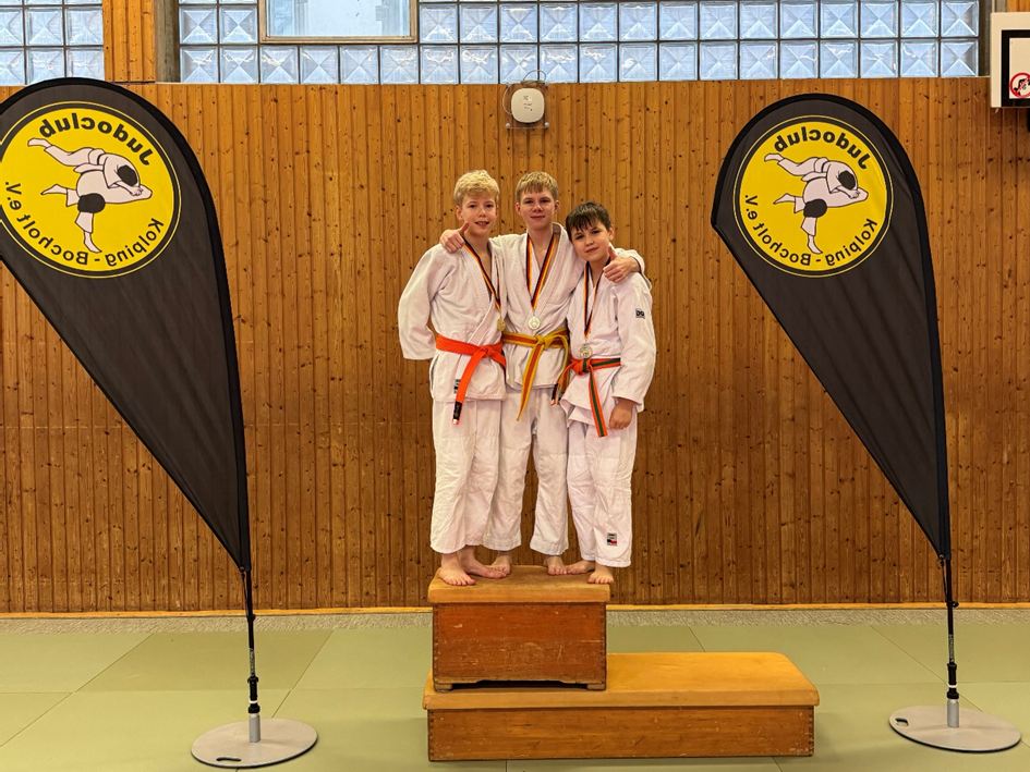 Die U15-Judoka sammelten Kreismeistertitel. v. l. n. r. Erich, Linus und Moritz