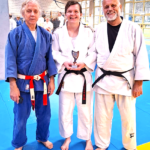 Roman Peter zeigte eine sehr gute Kata – toll vorbereitet von seinem Uke und Trainer Markus Sommer machte er an diesem Tag eine fehlerfreie Kata, von der Prüfungskommission gelobt freute er sich riesig über den lang ersehnten Traum vom 1.Dan. Auch Samuel Dietz – er ist erst der zweite deutsche ID-Judo-Kämpfer der bei den World-Games die Goldmedaille in der Wettkampfklasse 1 errang – lief eine sehr gute Kata und durfte sich für das abschließende Gruppenbild den Schwarzgurt vom Trainer umbinden.